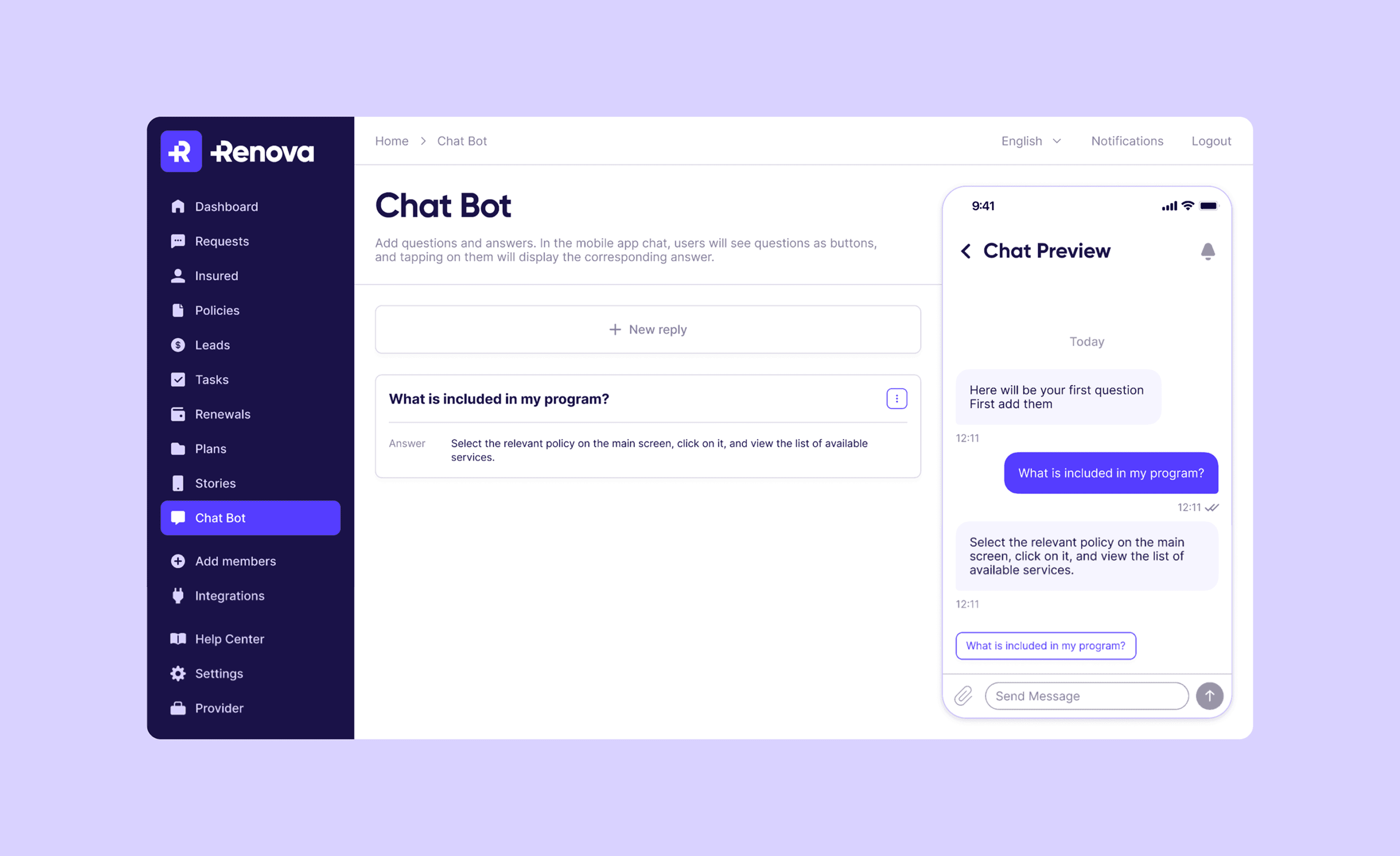 We implemented an in-product chatbot with configurable auto-replies, delivering instant answers and reducing support load while improving customer experience.