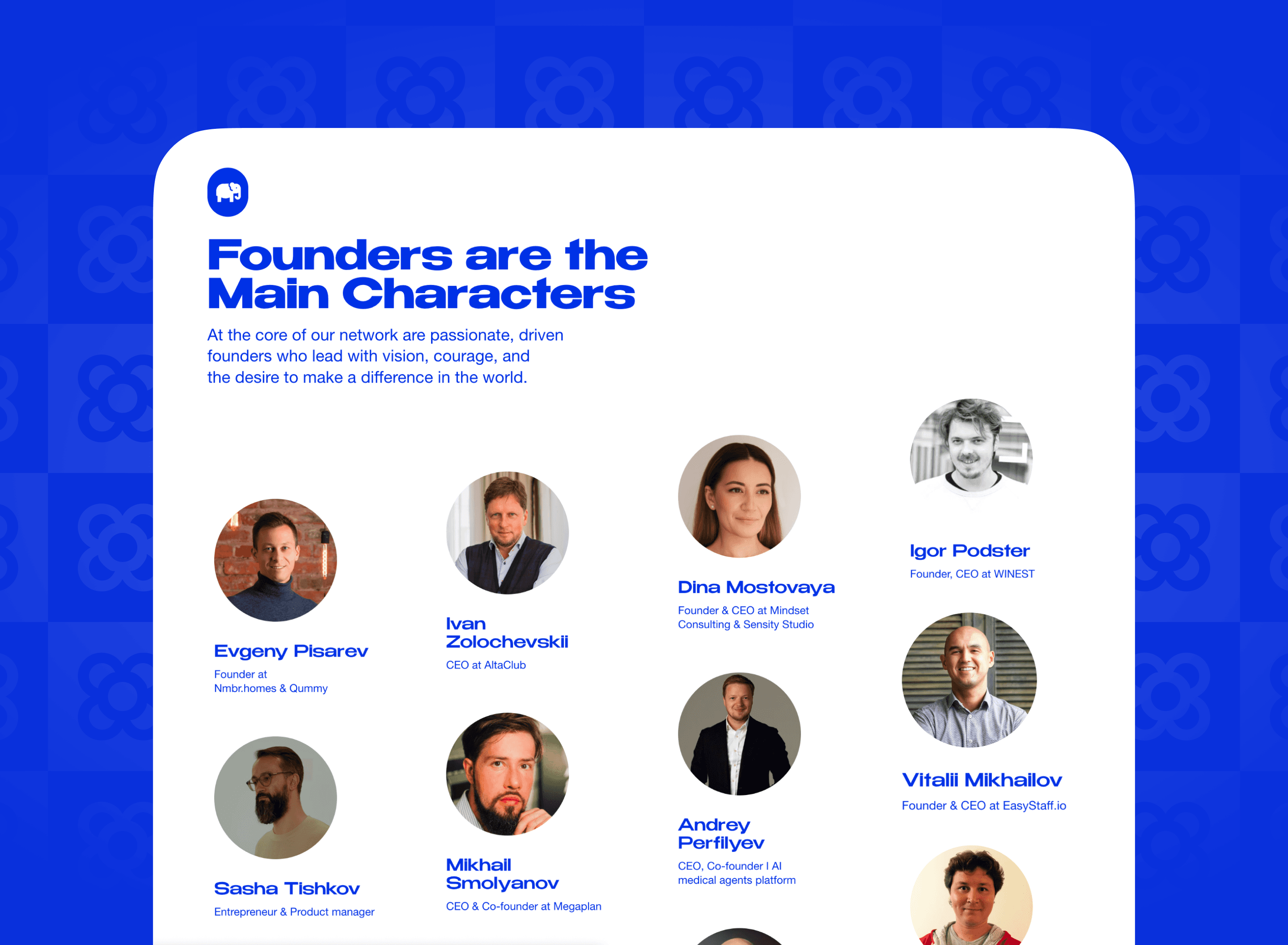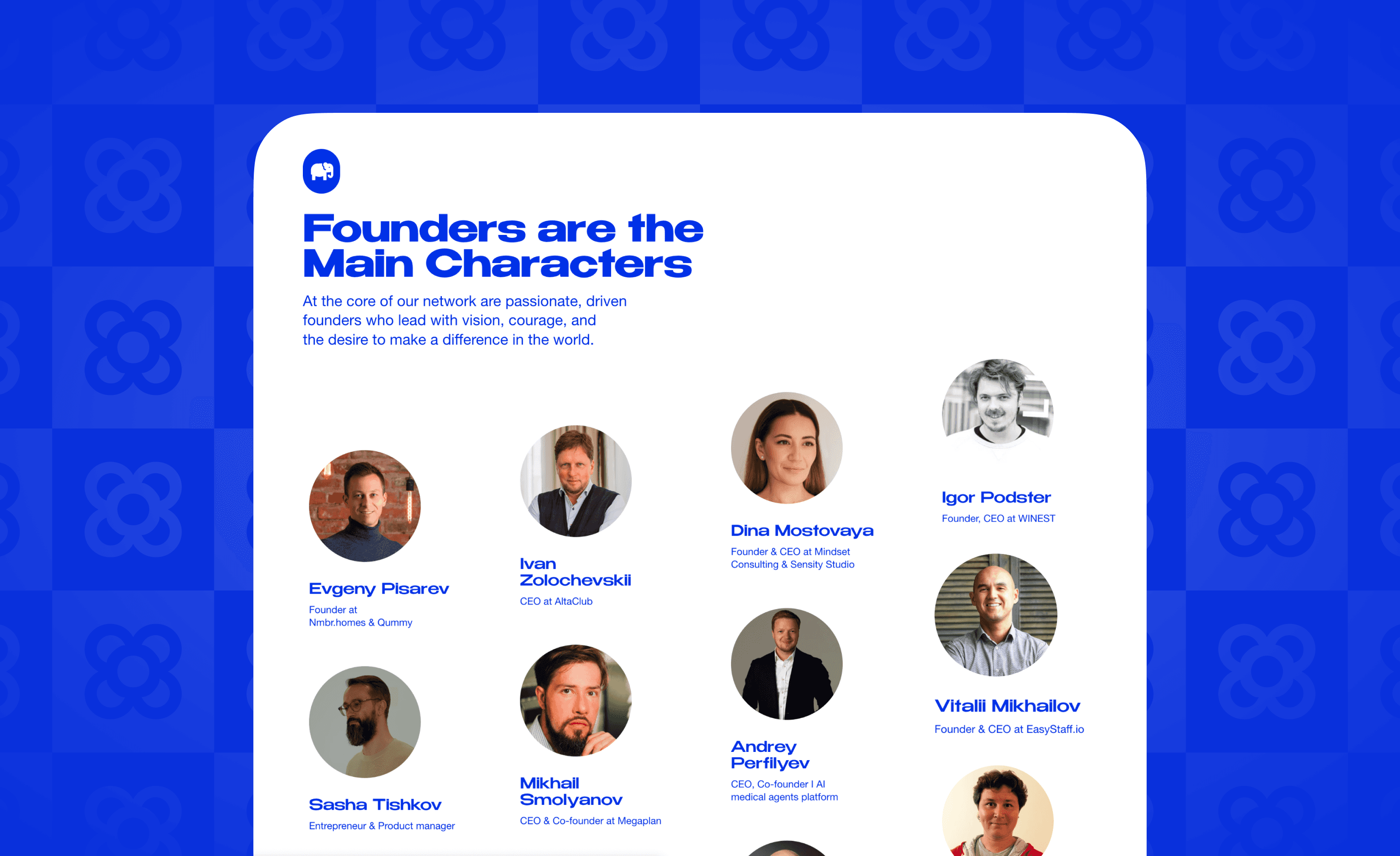 Real founder profiles front and center